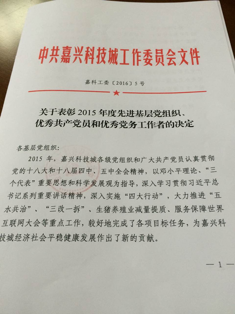 在7月1日召開(kāi)的嘉興科技城慶祝中國共產(chǎn)黨成立95周年表彰大會(huì )上,99名黨員被授予“優(yōu)秀共產(chǎn)黨員”稱(chēng)號,我司盧永根、鄭勝利兩位黨員榜上有名,被授予“2015年度優(yōu)秀共產(chǎn)黨員”稱(chēng)號。這是上級黨委對這兩位黨員工作的肯定,也是公司的集體榮譽(yù),希望全體共產(chǎn)黨員和員工向他們學(xué)習,愛(ài)崗敬業(yè),立足崗位多作貢獻。