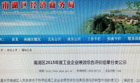 根據《嘉興市南湖區人民政府關(guān)于科學(xué)應用工業(yè)企業(yè)績(jì)效評價(jià)結果促進(jìn)經(jīng)濟轉型升級的意見(jiàn)》(南政發(fā)〔2016〕35號)等有關(guān)文件精神,南湖區經(jīng)濟商務(wù)局對區內規上、規下工業(yè)企業(yè)2015年度用地績(jì)效情況進(jìn)行了評價(jià),我公司以75.7的總得分,升檔獲評A類(lèi)(優(yōu)先發(fā)展)企業(yè)。