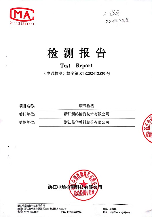 • 縱華香料5月廢氣檢測報告
