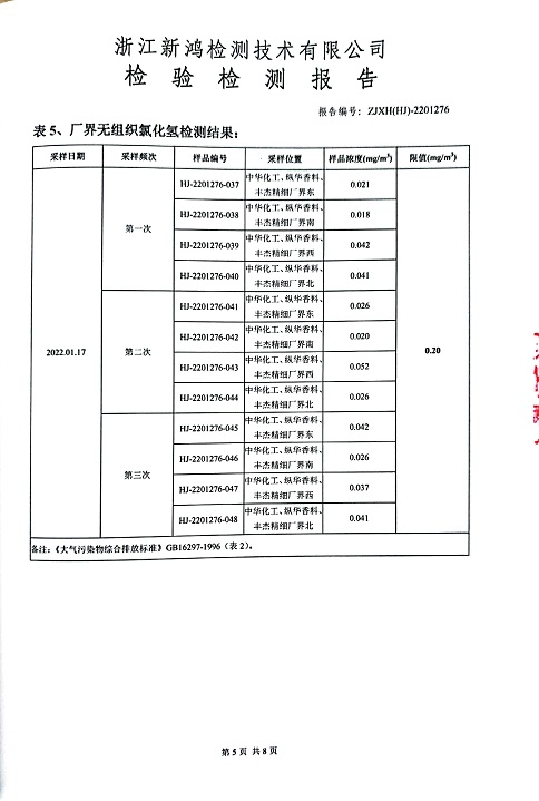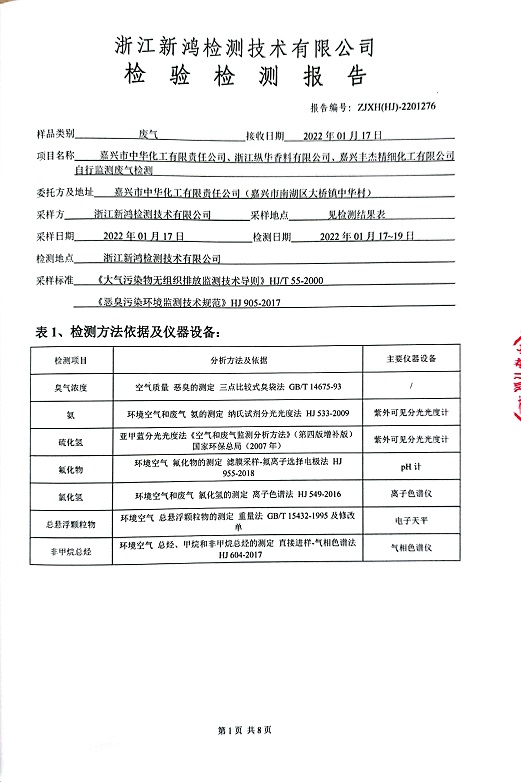 報告名稱(chēng):中華化工、縱華、豐杰2022年1季度廠(chǎng)界檢測報告
