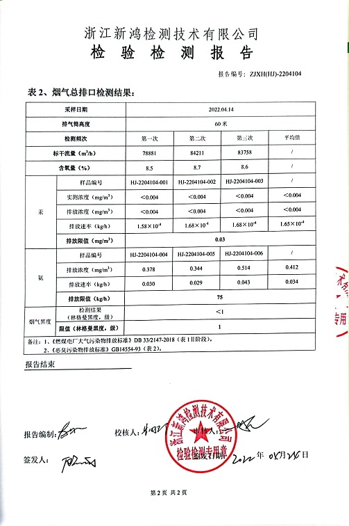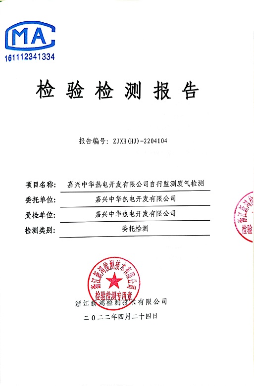 報告名稱(chēng):中華熱電2022.4月廢氣檢測報告