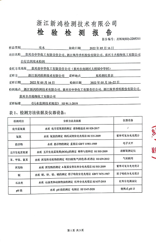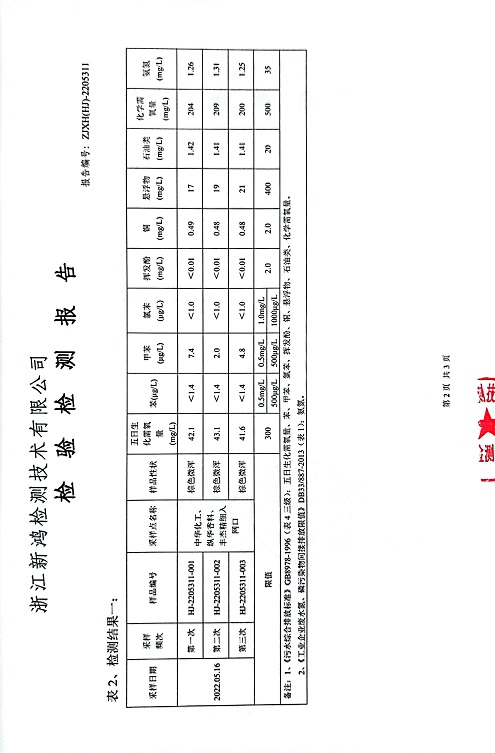 報告名稱(chēng):中華化工、豐杰、縱華2022.2季度廢水檢測報告