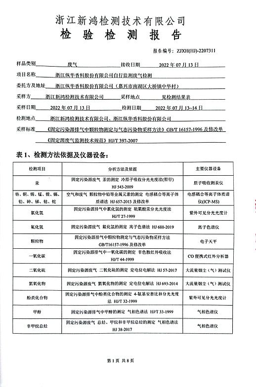 報告名稱(chēng):縱華2022年7月廢氣檢測報告