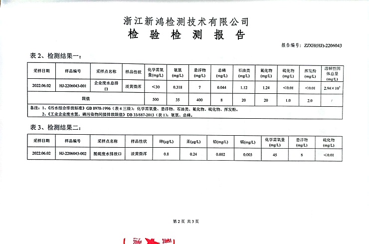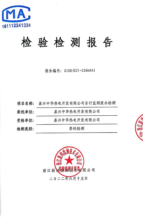 報告名稱(chēng):中華熱電2022年6月廢水檢測報告