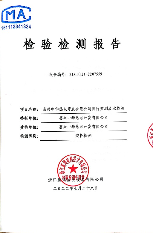 報告名稱(chēng):中華熱電2022年7月廢水檢測報告