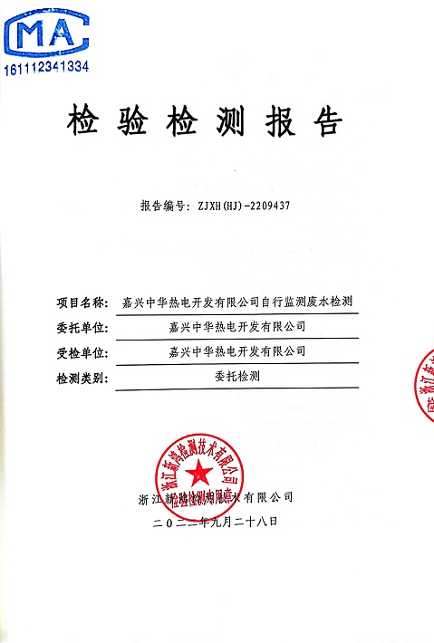 報告名稱(chēng):中華熱電2022年9月廢水檢測報告