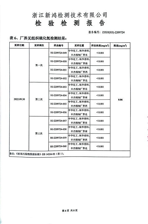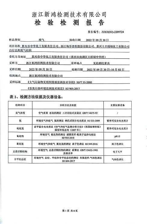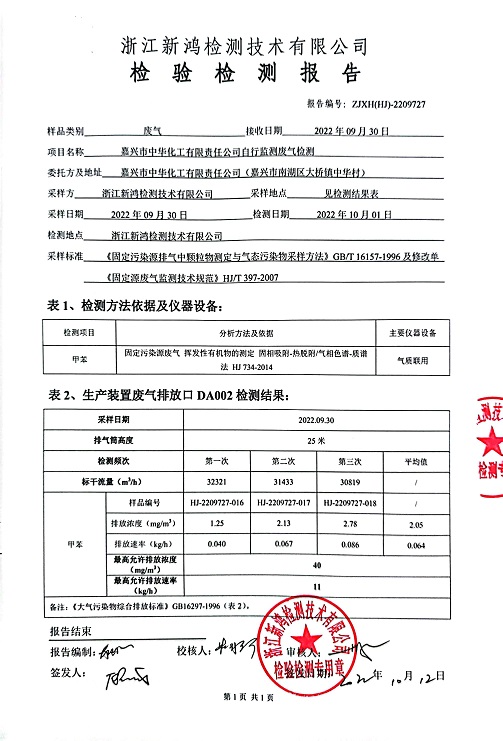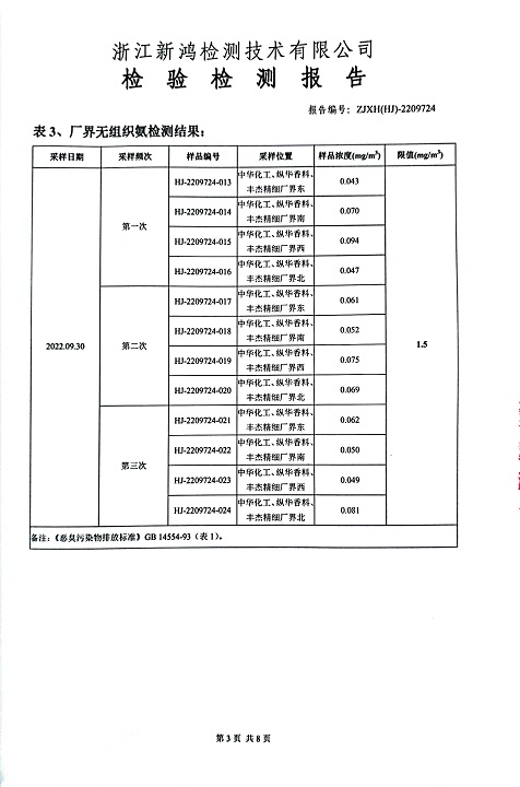 報告名稱(chēng):中華化工、縱華、豐杰2022年3季度廠(chǎng)界檢測報告
