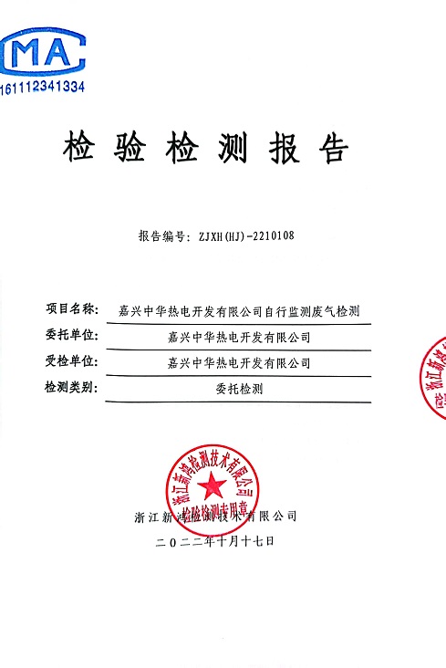 報告名稱(chēng):中華熱電2022年10月廢氣檢測報告