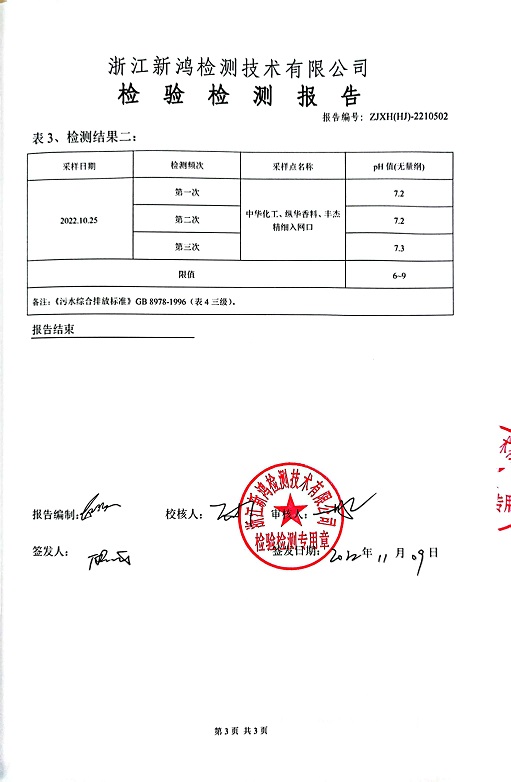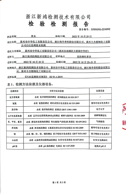 報告名稱(chēng):中華化工、縱華、豐杰2022年4季度廢水檢測報告