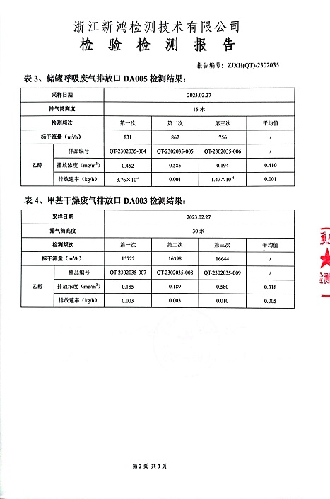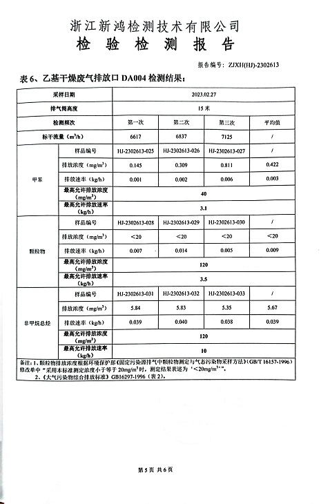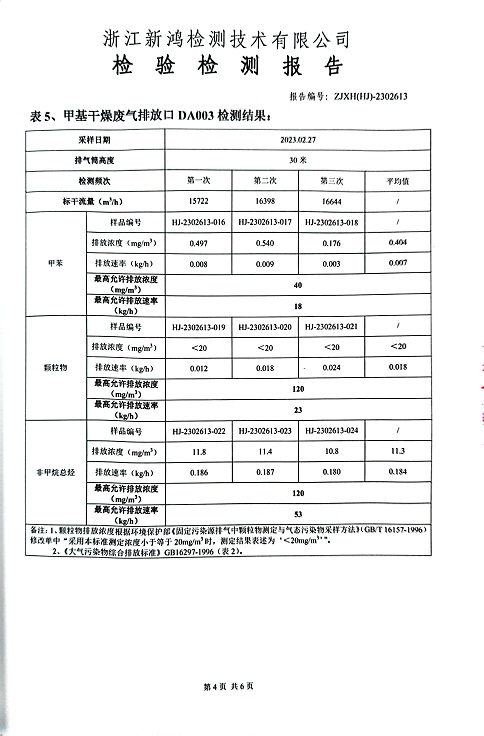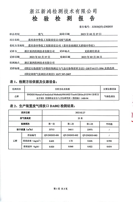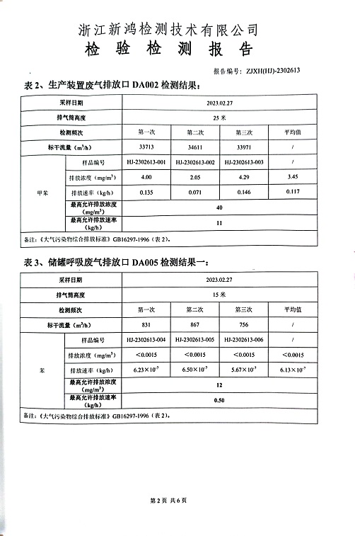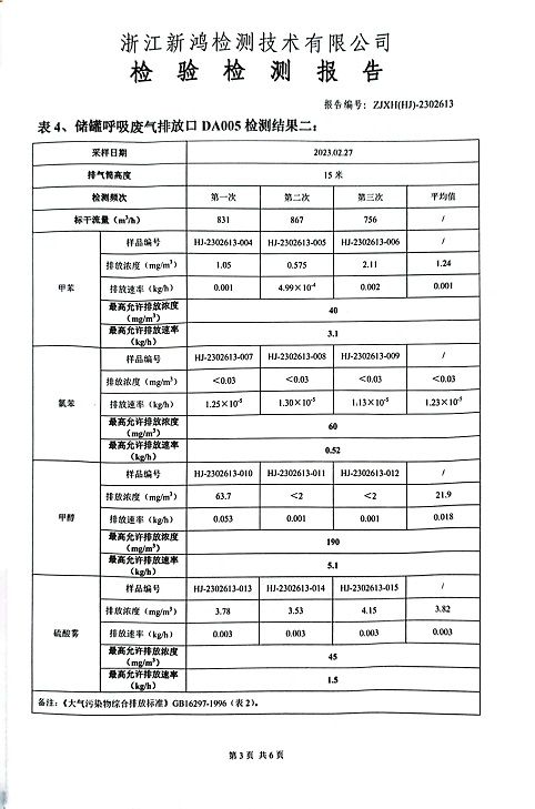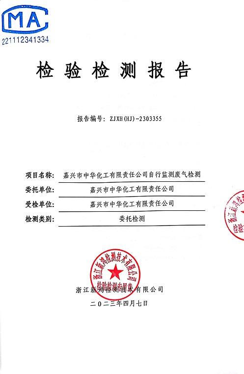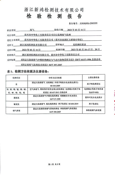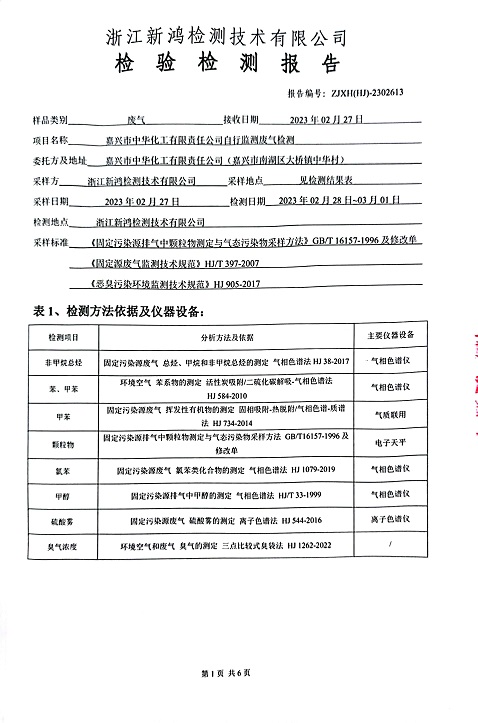 報告名稱(chēng):中華化工2023年上半年廢氣檢測報告