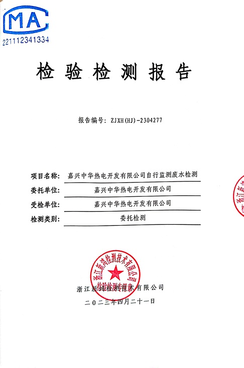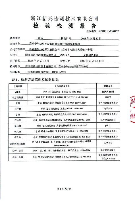 報告名稱(chēng):中華熱電2023.4廢水檢測報告