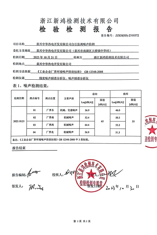 報告名稱(chēng):中華熱電2023年4季度噪聲檢測報告