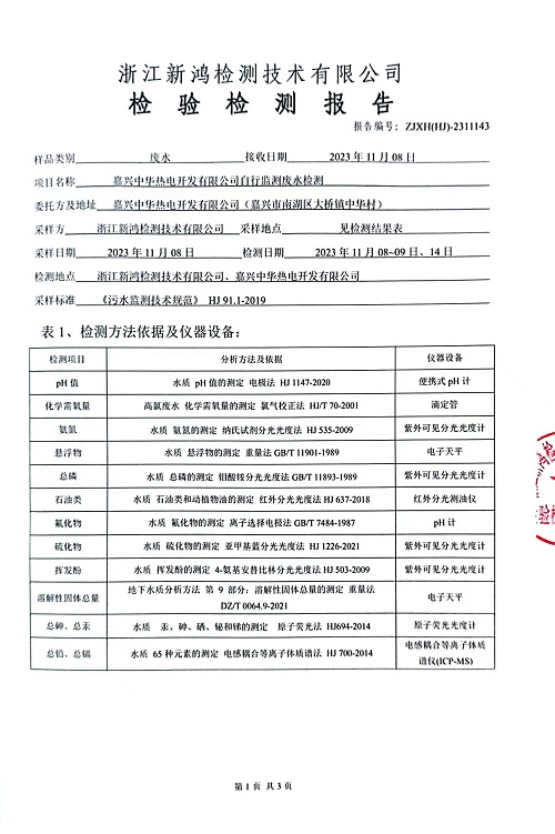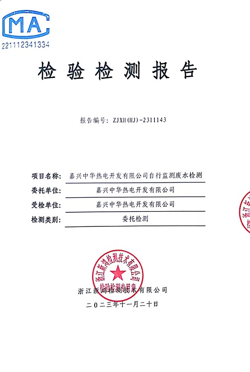 報告名稱(chēng):中華熱電2023.11廢水檢測報告
