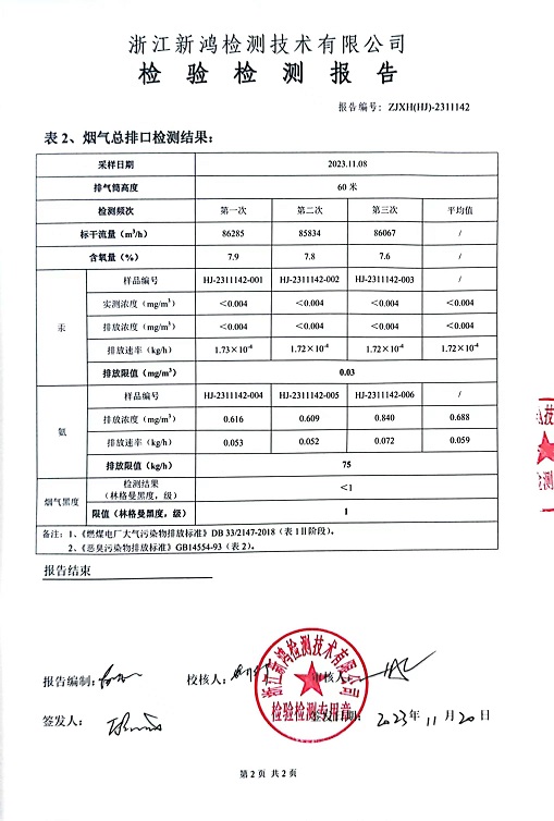 報告名稱(chēng):中華熱電2023.11月廢氣檢測報告