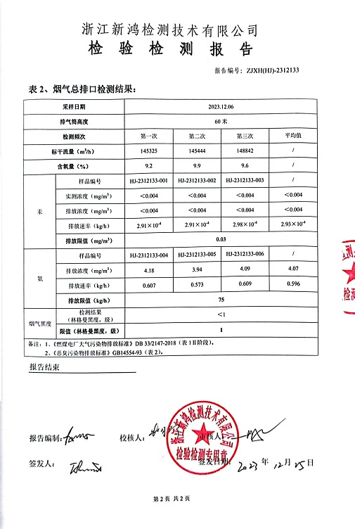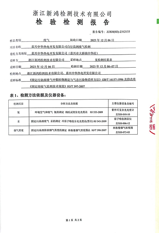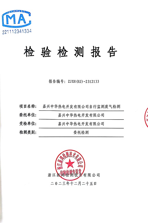 報告名稱(chēng):中華熱電2023年12月廢氣檢測報告