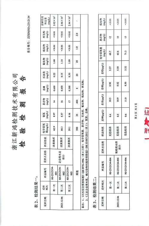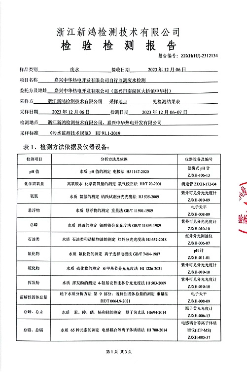 報告名稱(chēng):中華熱電2023年12月廢水檢測報告