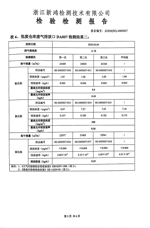 報告名稱(chēng):2024年中華化工1季度廢氣檢測報告
