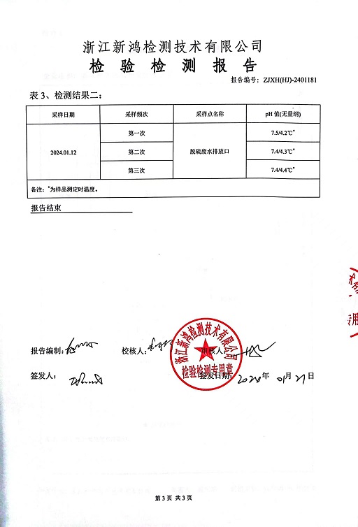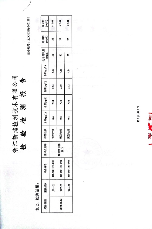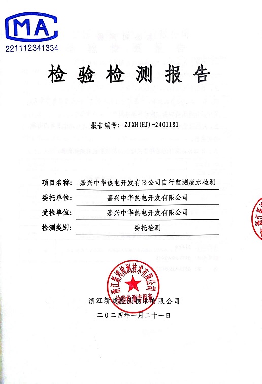 報告名稱(chēng):2024年中華熱電1月廢水檢測報告
