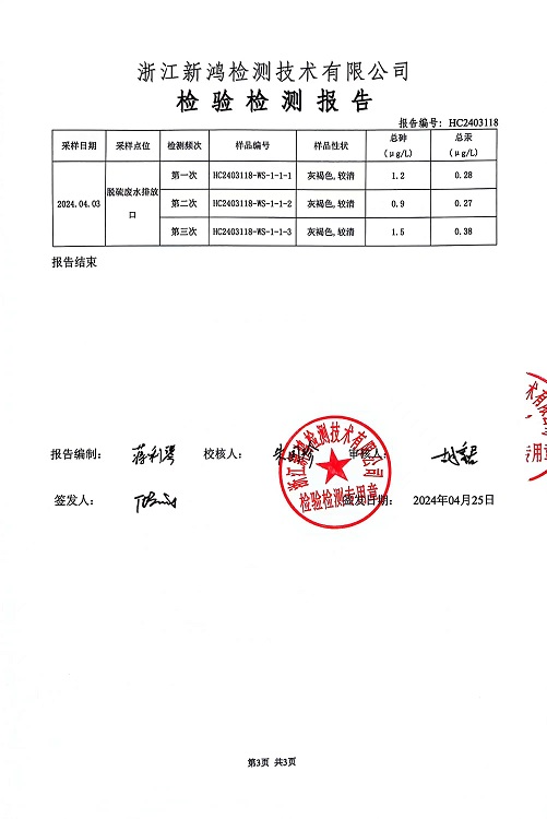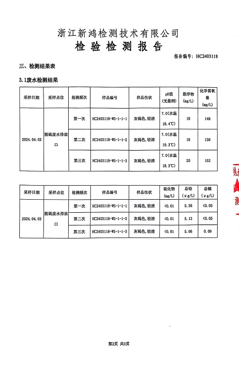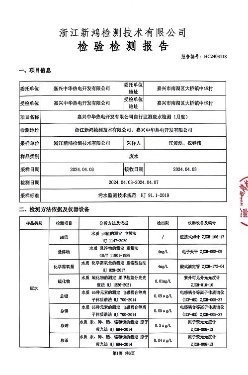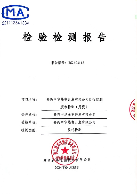 報告名稱(chēng):2024年中華熱電4月廢水檢測報告