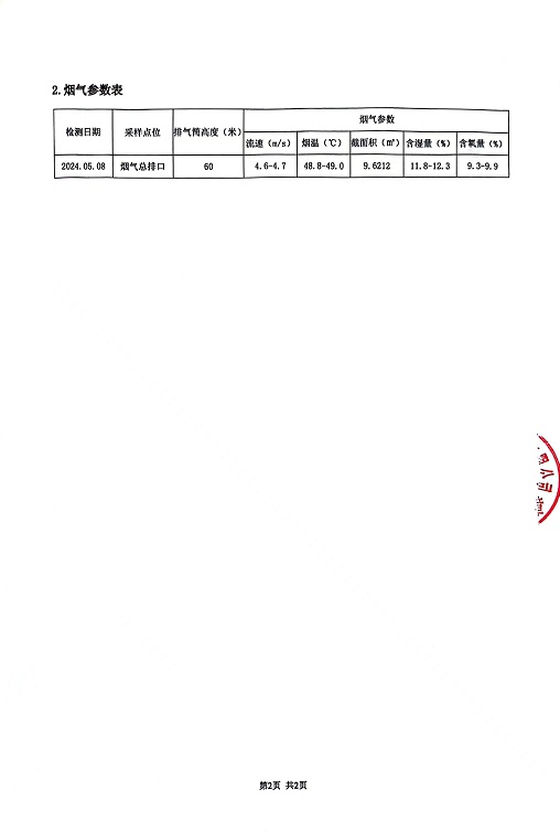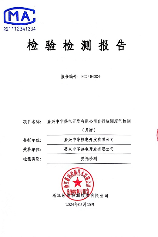報告名稱(chēng):2024年中華熱電5月廢氣檢測報告