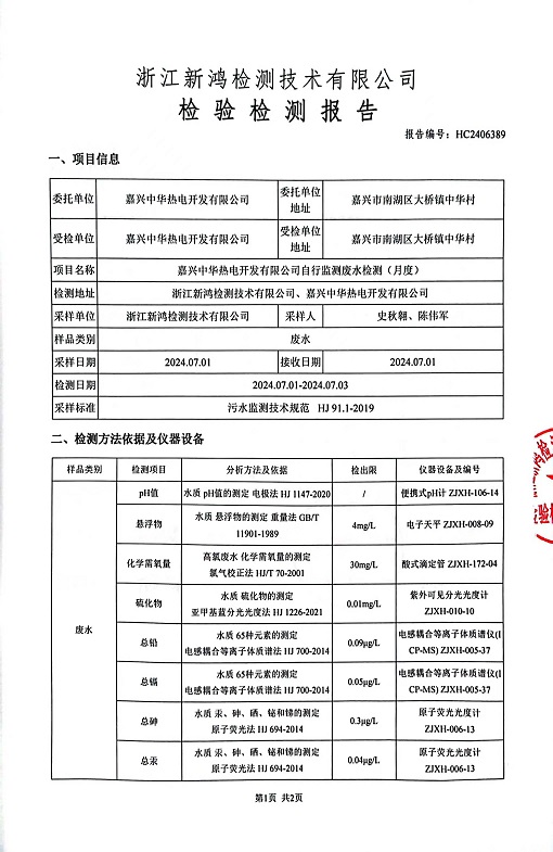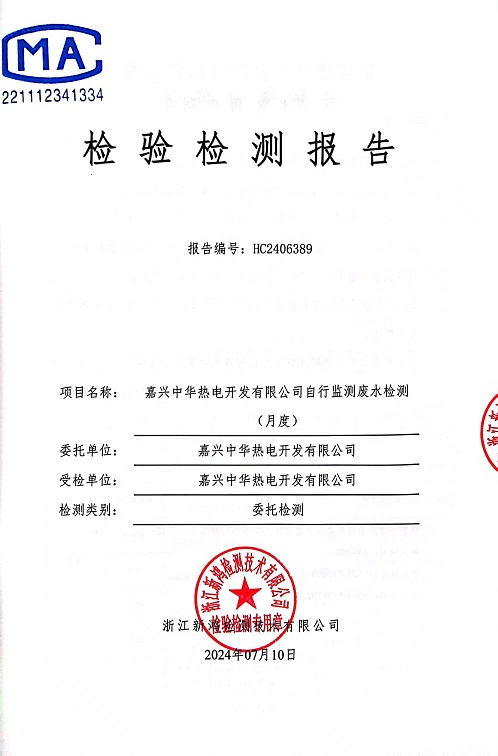 報告名稱(chēng):2024年中華熱電7月廢水
