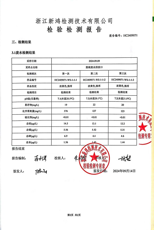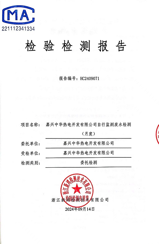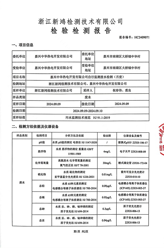 報告名稱(chēng):中華熱電9月廢水檢測報告