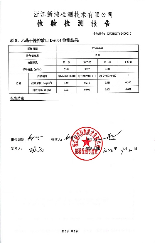 報告名稱(chēng):中華化工下半年乙醇檢測報告