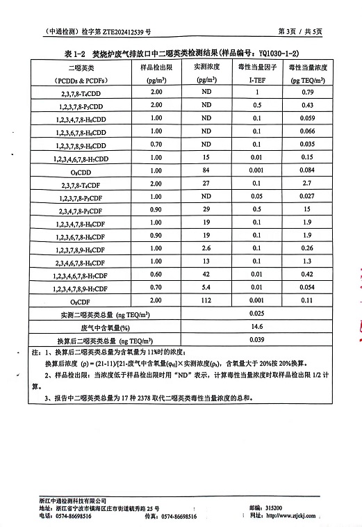 報告名稱(chēng):2024年縱華二噁英下半年檢測報告