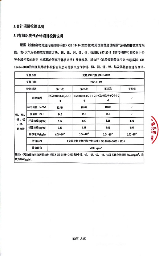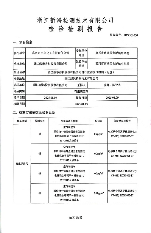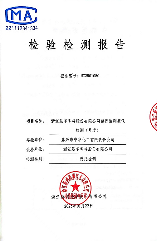 報告名稱(chēng):2025年1月縱華香料煙氣檢測報告
