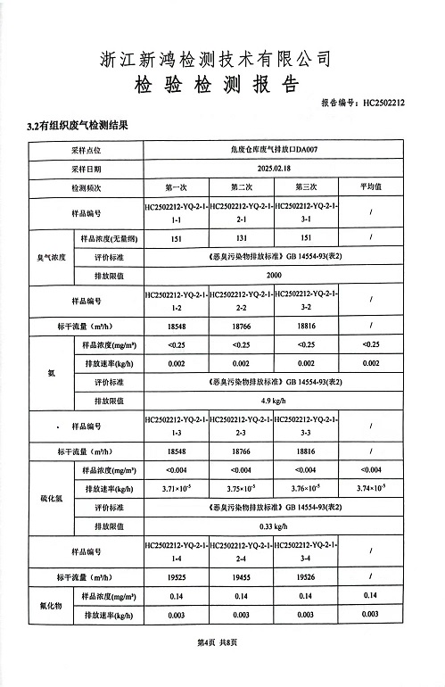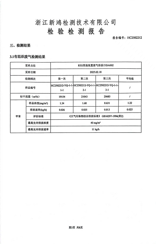 報告名稱(chēng):中華化工2025年1季度廢氣檢測報告
