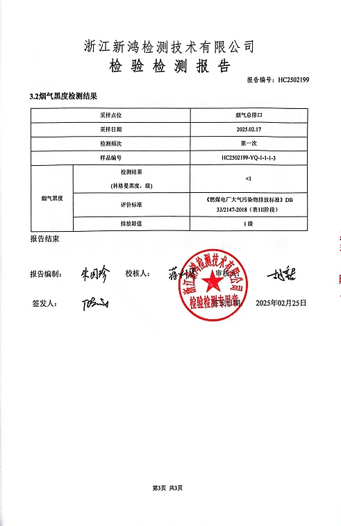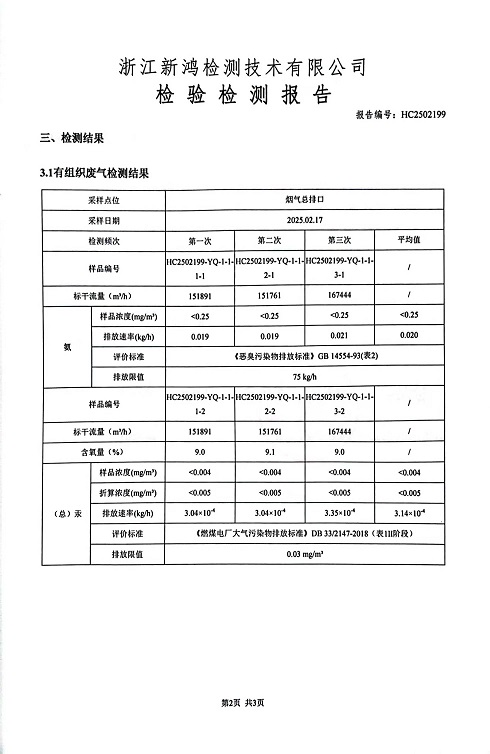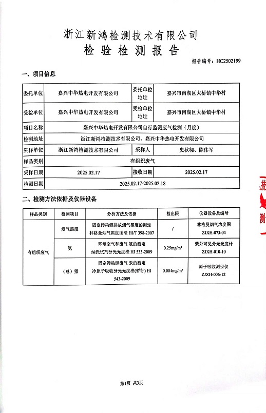報告名稱(chēng):中華熱電2025年2月煙氣檢測報告