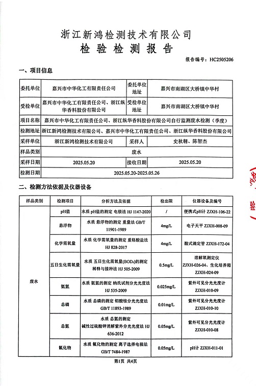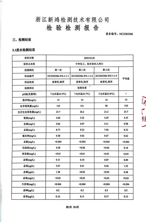 報告名稱(chēng):中華化工2季度廢水檢測報告