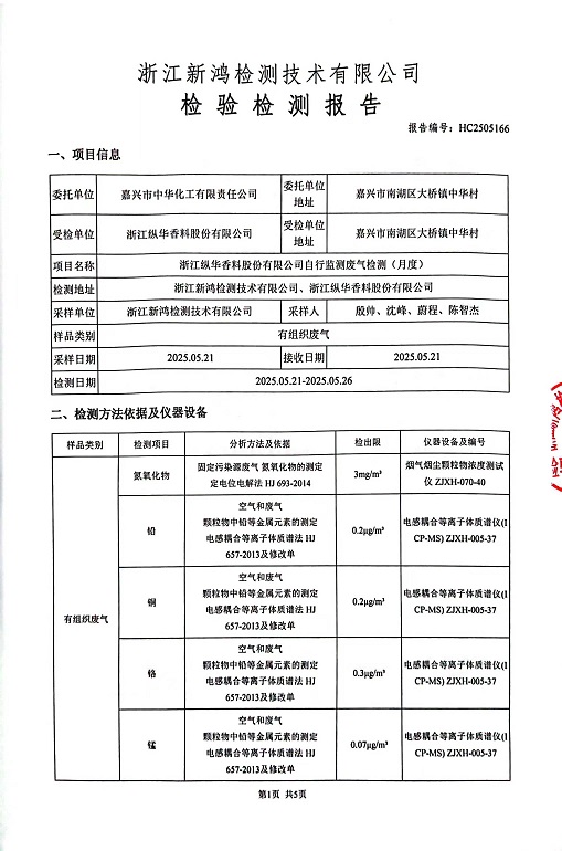 報告名稱(chēng):縱華香料5月廢氣檢測報告