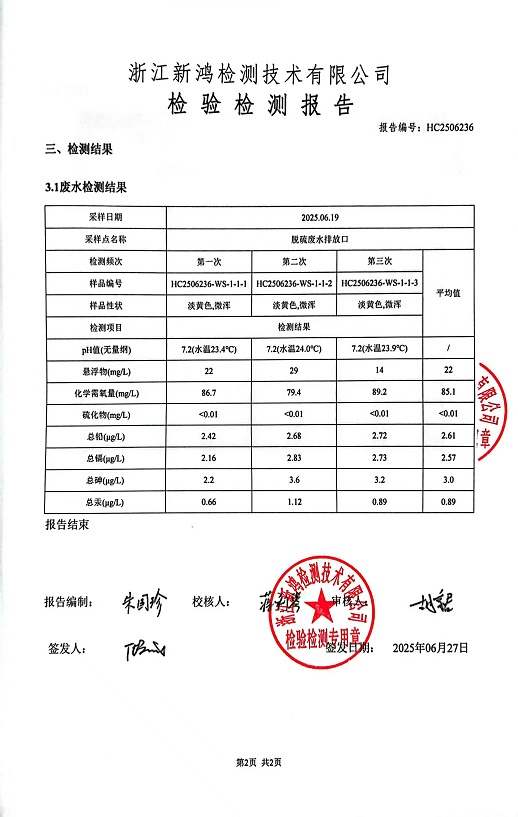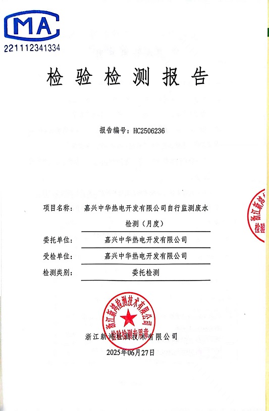 報告名稱(chēng):中華熱電6月廢水檢測報告