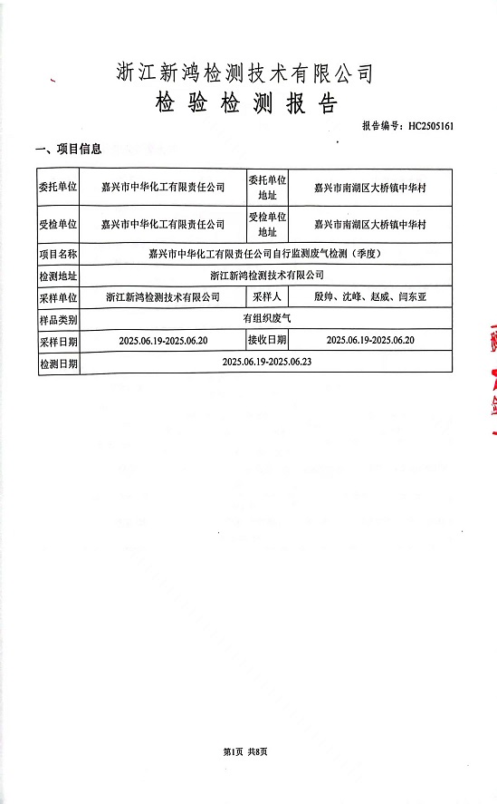 報告名稱(chēng):中華化工2季度廢氣檢測報告