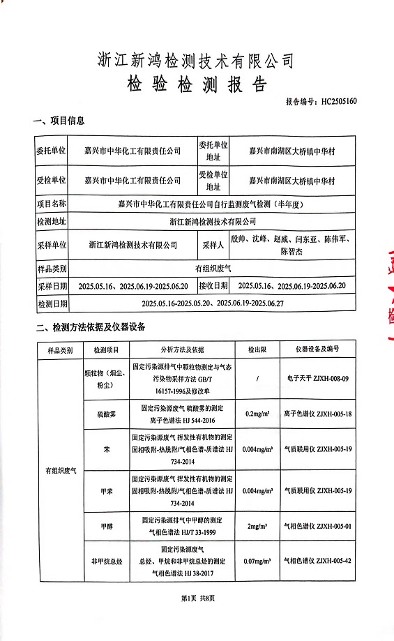 報告名稱(chēng):中華化工上半年廢氣檢測報告