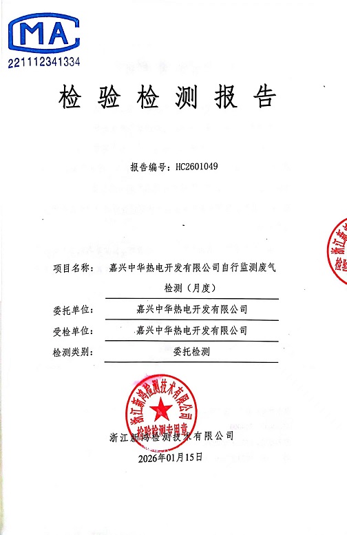 報(bào)告名稱:中華熱電26年1月廢氣檢測報(bào)告