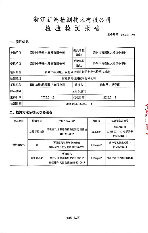 報(bào)告名稱(chēng):中華熱電26年1季度廠界檢測(cè)報(bào)告